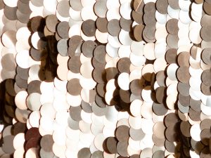 Самые блестящие и отражающие. Металл создаёт зеркальный эффект, особенно при прямом солнечном свете. Пайетки 3 см из металла уже дают заметные блики, а 5 см могут быть слишком яркими для гостиной, где люди проводят много времени. Металлические пайетки лучше подходят для помещений, где солнце бывает редко, или для декора, который виден только издалека.