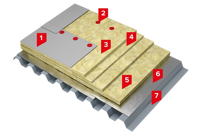 Система неэксплуатируемой кровли с использованием KRONOX® Классик обычно включает следующие слои: